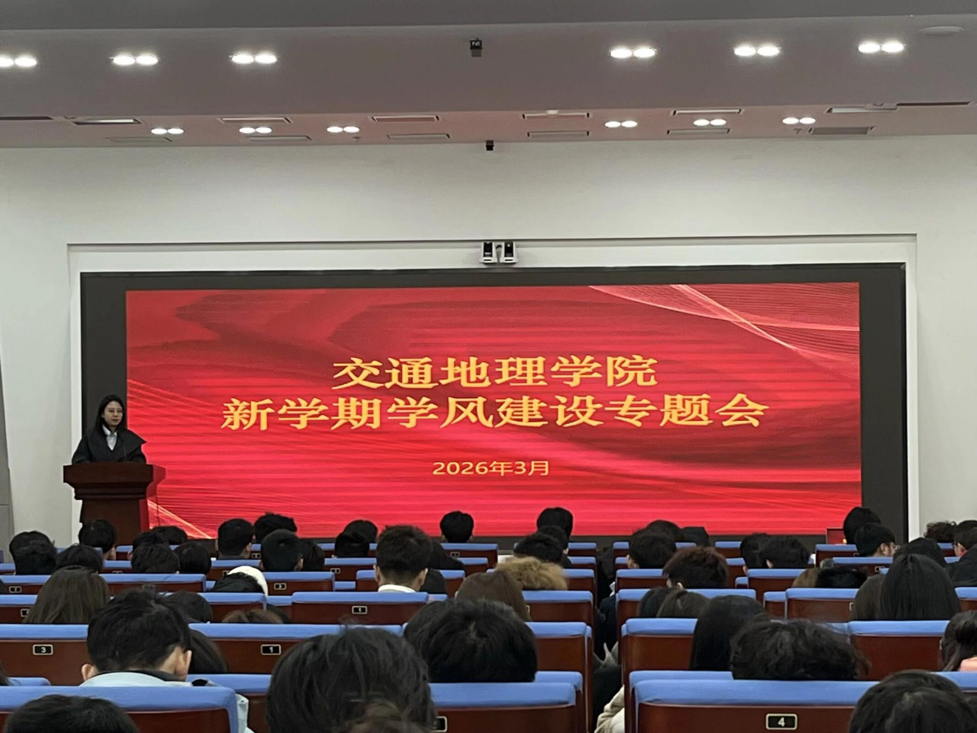 3月20日,交通地理学院学风建设推进会在长清校区机电楼B107举办。学院学生工作办公室主任玄路宁、辅导员许廷强出席,全体2024级、2025级学生参加活动。